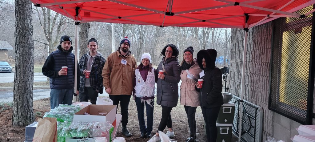 Une équipe de bénévoles composée d’employés du Casino du Lac Leamy en soutien à l’événement attractif sous le chapiteau de la Halte-Chaleur Guertin Une équipe de bénévoles composée d’intervenantes des organismes communautaires Réseau Outaouais ISP et du Centre de sécurité alimentaire de Gatineau en action à Gatineau, secteur GatineauUne équipe de bénévoles composée d’employés du CISSSO (Gabriel Fortin, SPA, Angélique Baril, intervenante, Audrey Paris, ASI, et Sara Falardeau, coordonnatrice clinico administrative à la DSMD) ainsi que d’animateurs de la maison des jeunes Adojeune inc. en soutien à l’événement attractif du Parc SansCartier