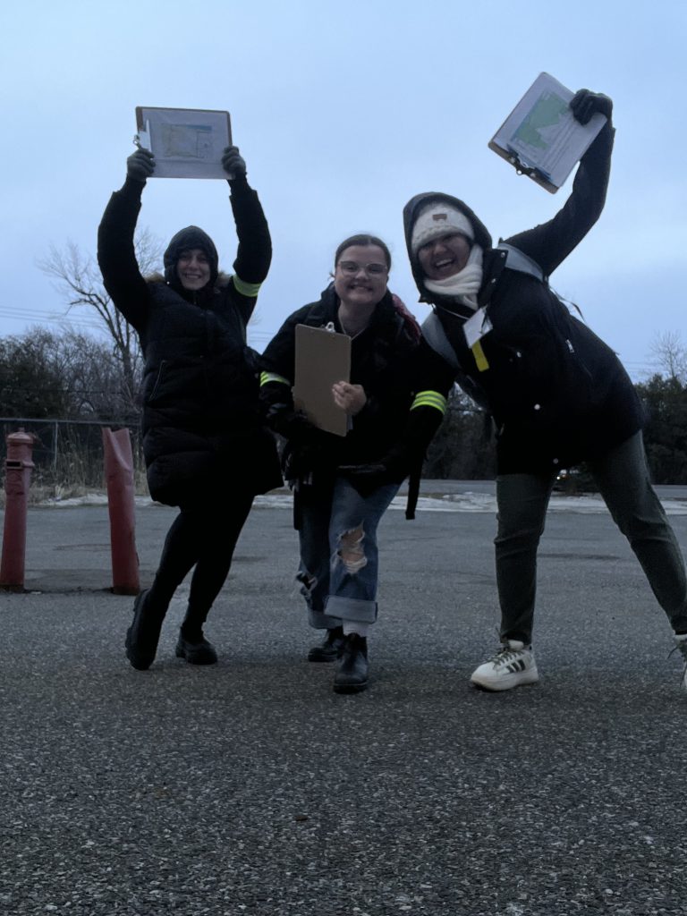 Jeneviève Caron, directrice adjointe de la DSMD, Valérie Aubut, coordonnatrice régionale du dénombrement, APPR à la DSMD, Érica Landry, APPR et Jing Hu, SPA à la DSMDJade Pigeon Amyot, intervenante au CISSSO, et des bénévoles en action à Gatineau, secteur Hull